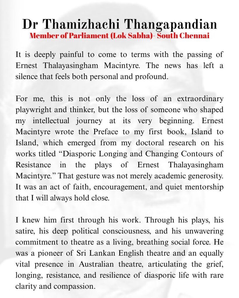 The book “Island to Island – The Voice of Sri Lanka Playwright, Ernest Thalayasingham Macintyre” by Thamizhachi Thangapandian, can be found at https://emeraldpublishers.com/product/island-to-island/.