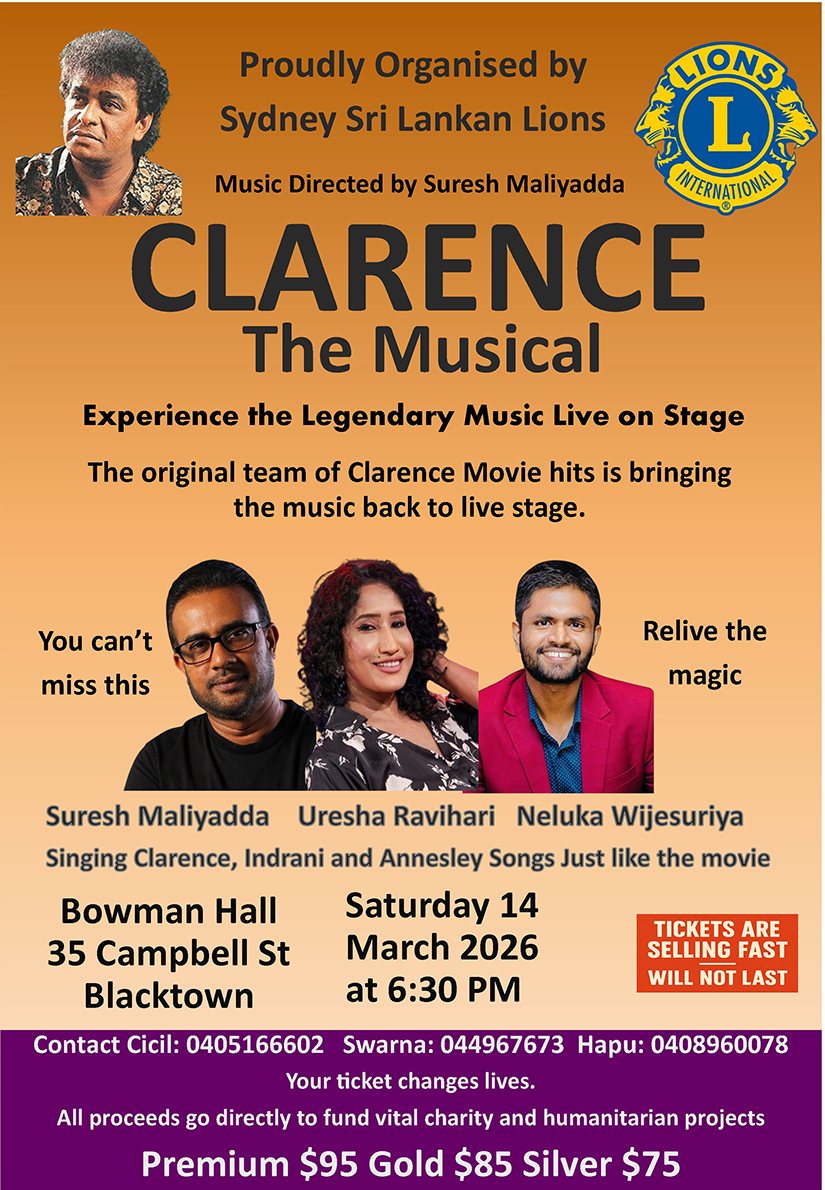 Featuring Suresh Maliyadda, Uresha Ravihari, and Neluka Wijesuriya, performing the beloved songs of Clarence, Indrani, and Annesley, just as they were heard in the film.