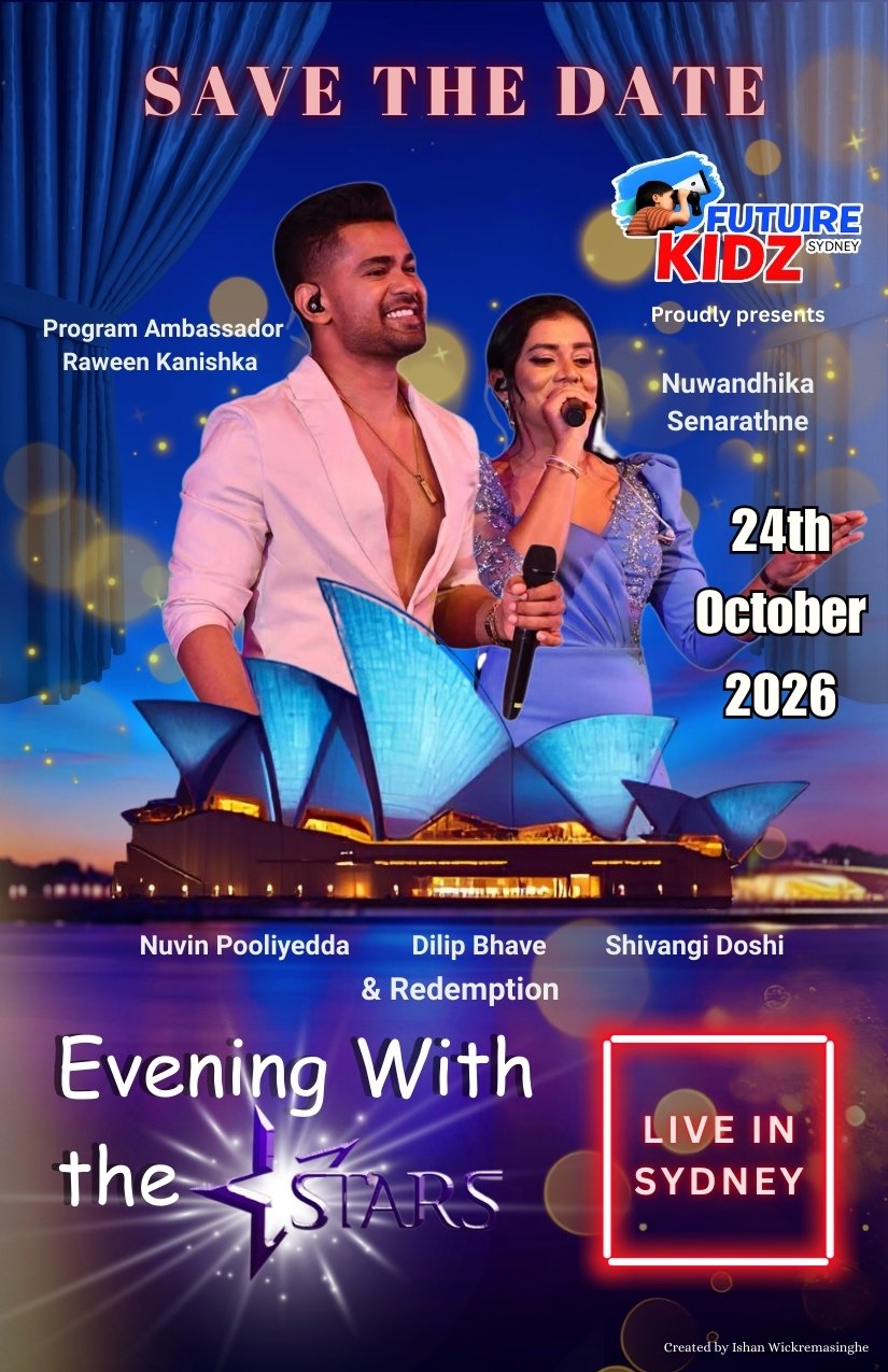Futurekidz Sydney INC. is a registered not for profit organisation operating from Sydney. We operate an online school for students from low income families in SL. We will conduct this fundraiser musical on 24 October in Sydney. The key performers will be Raween Kanishka and Nuwandhika Senarathne.