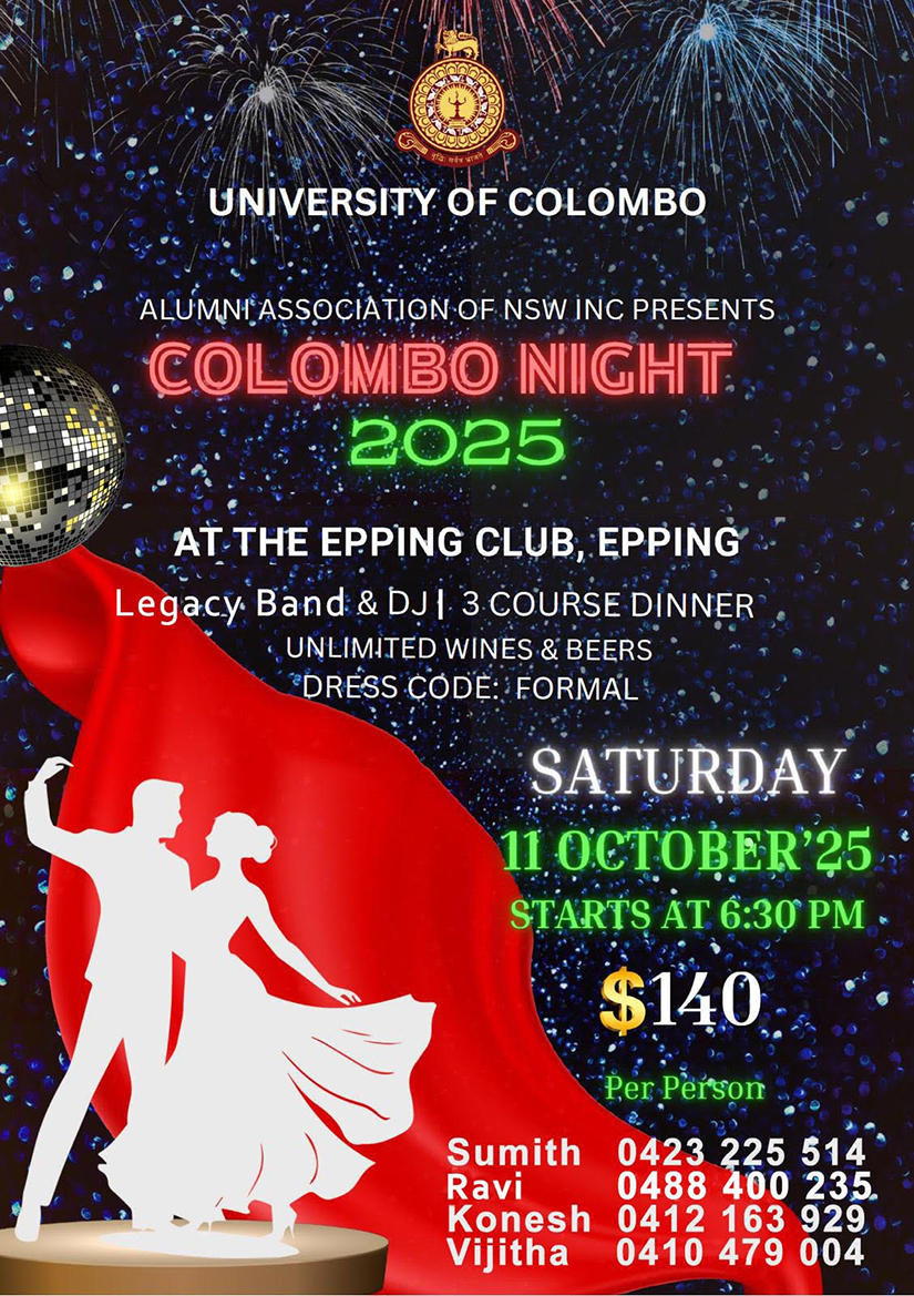 This event has been organised to raise funds for scholarships program at the University of Colombo students who are experiencing financial hardships. Live 7-Piece Legacy Band, DJ and Exotic Samba Dancers.